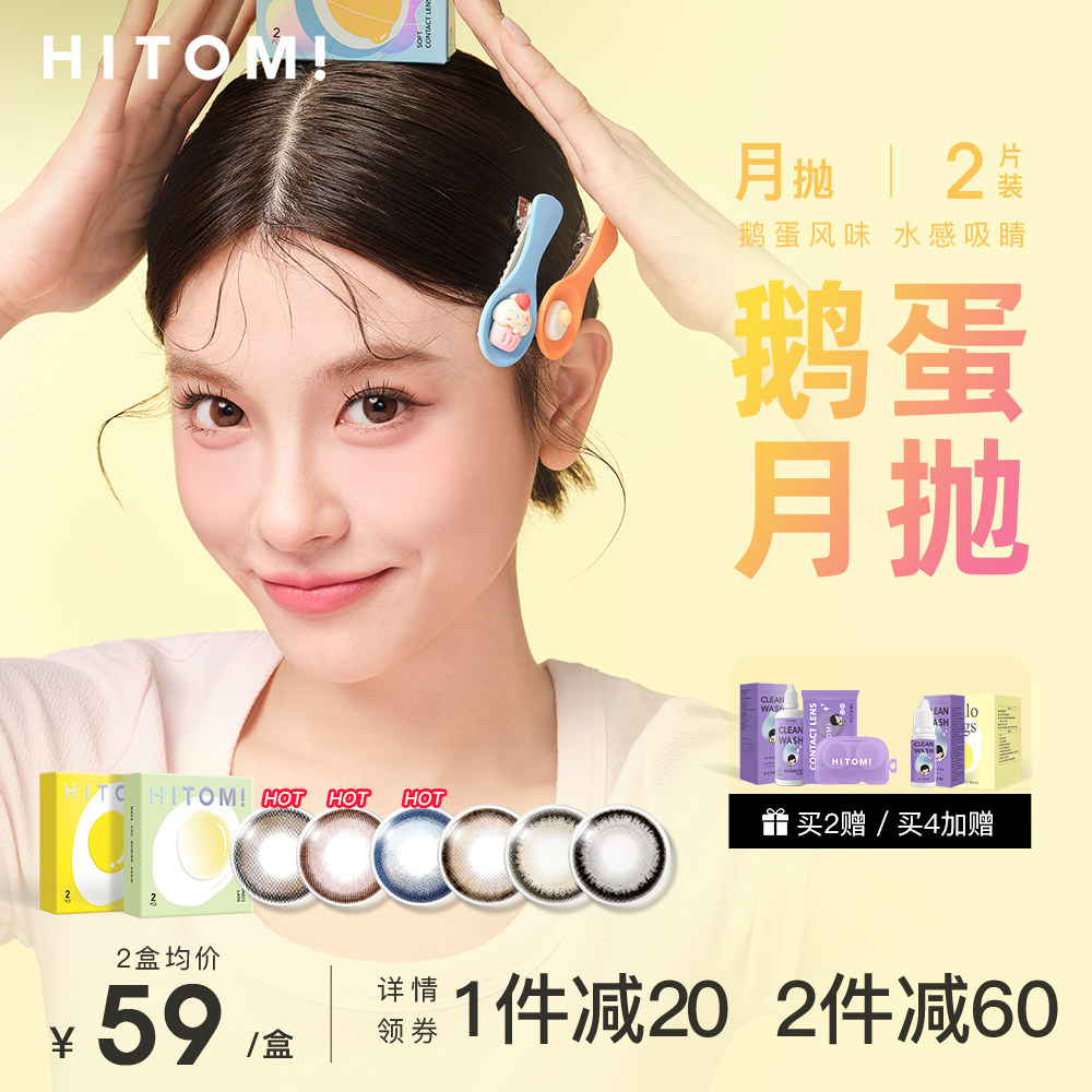 HITOMI希多蜜鹅蛋美瞳月抛2片半熟青汁自然混血大小直径隐形眼镜