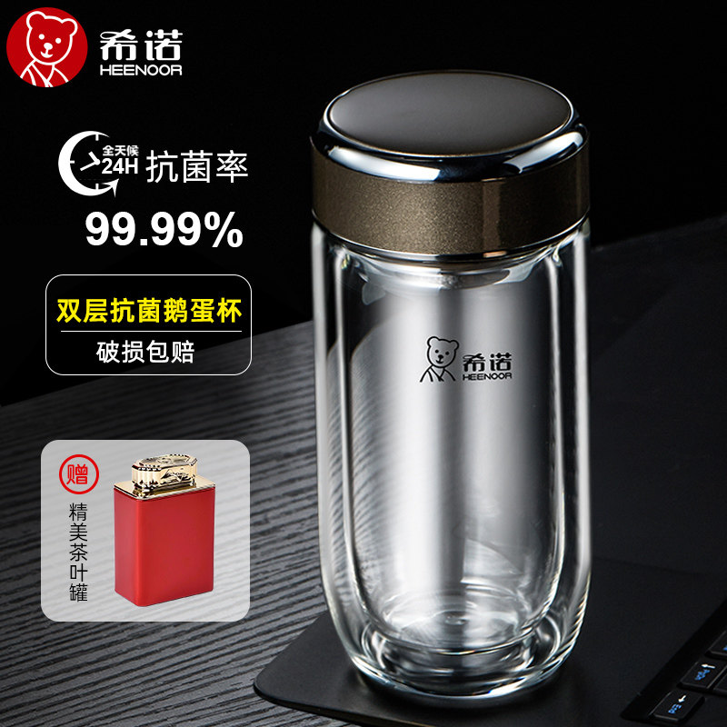 希诺抗菌玻璃杯双层隔热男士水杯官方官网旗舰店茶杯鹅蛋泡茶杯子