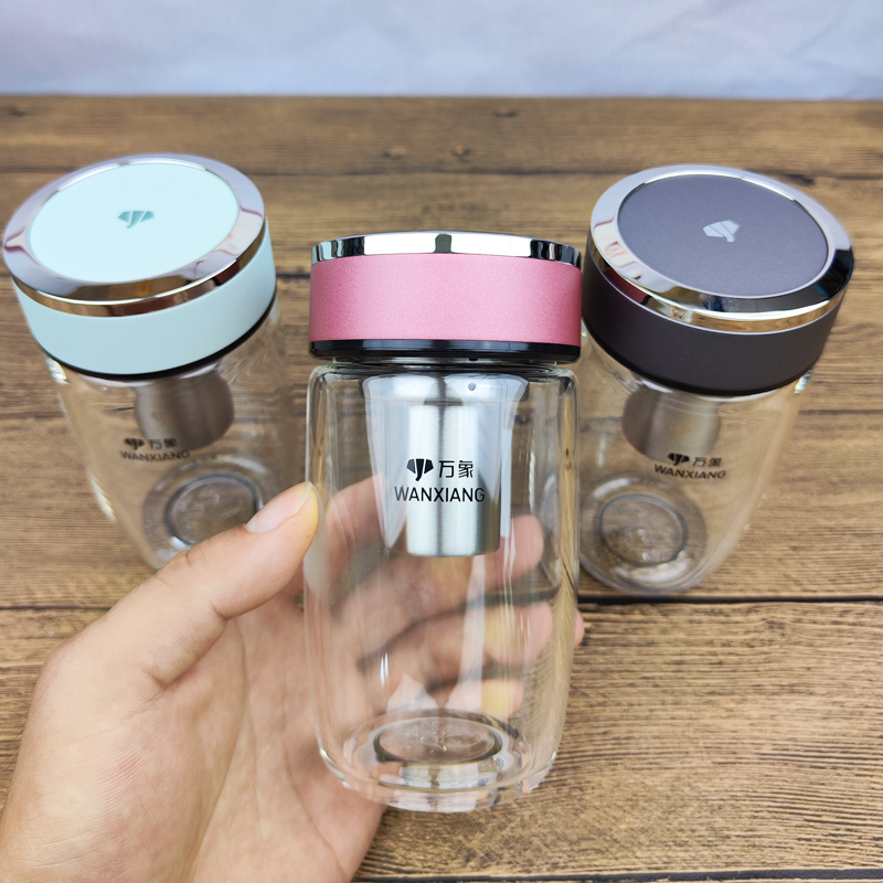 万象双层鹅蛋玻璃杯隔热水杯男士高档车载高颜值带滤网防烫茶杯子