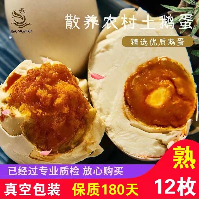咸鹅蛋农家散养新鲜腌制咸香即食真空包装12枚装大咸鹅蛋冒油现发
