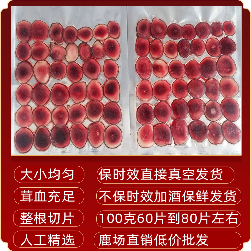 吉林梅花鹿茸片正宗正品真空袋50g鲜鹿茸泡酒新鲜血片鹿茸整枝干