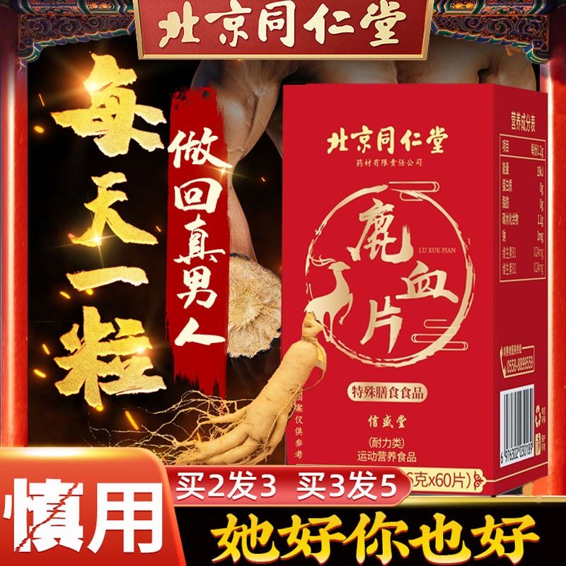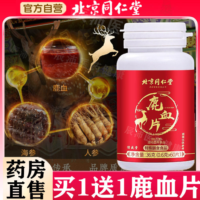 北京同仁堂鹿血片人鹿参膏鹿茸鹿血晶鹿鞭补片牡蛎肽男性养生肾丸