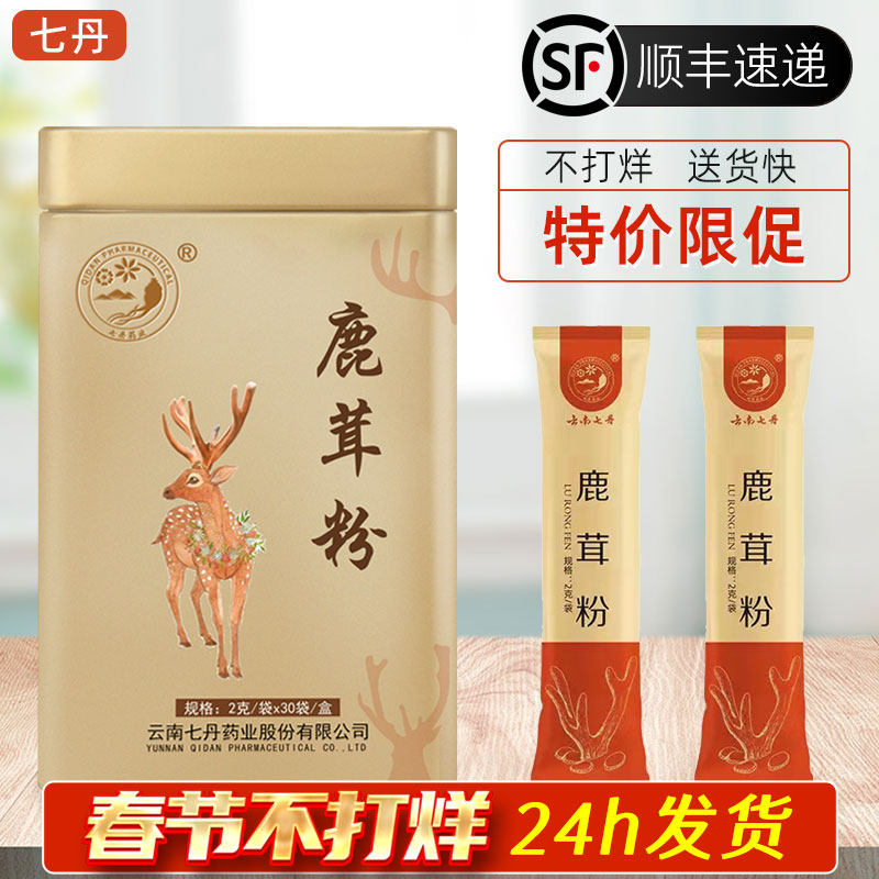云南七丹鹿茸粉(去血) 吉林梅花鹿茸片中药超细粉2克*30袋正品