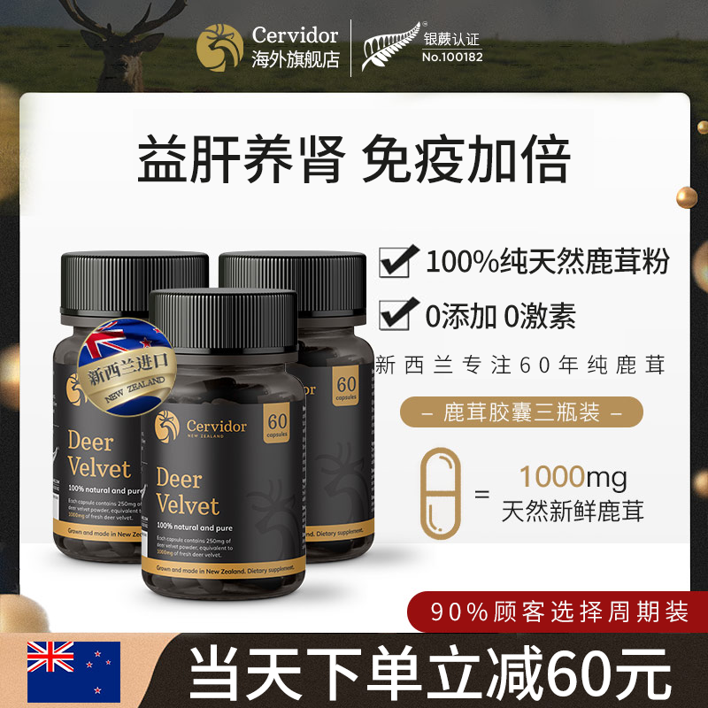 Cervidor新西兰原装进口鹿茸芬丸胶囊 鹿茸片男保健品片丸3瓶/60g