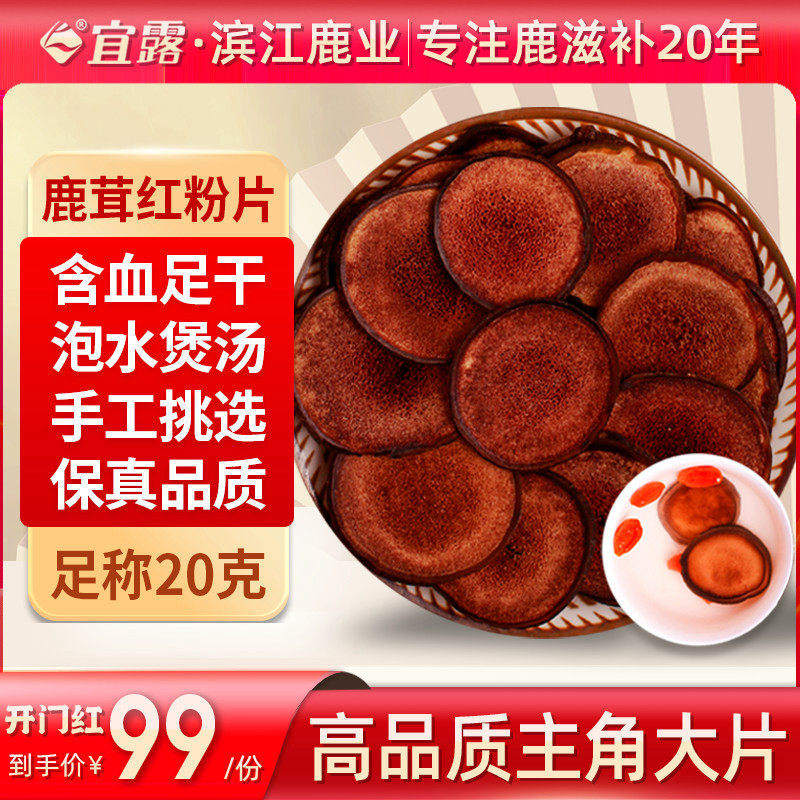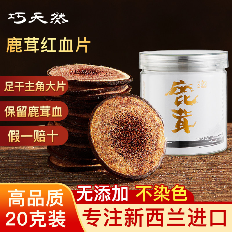 巧天然新西兰进口鹿茸片20g正品红血片官方旗舰店泡水煲汤泡酒料