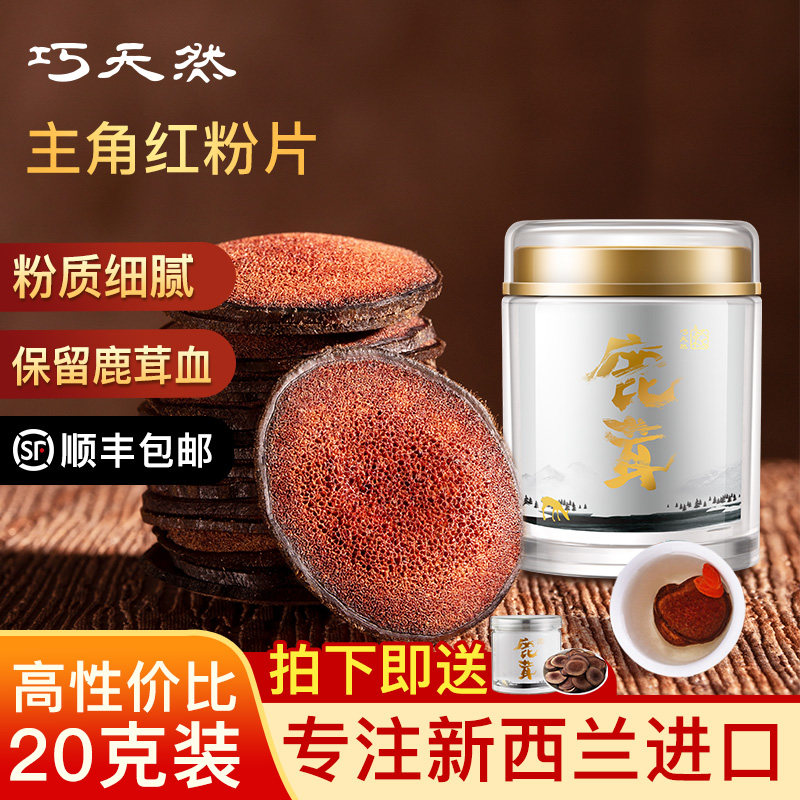 巧天然新西兰进口鹿茸片红粉片20g正品旗舰店泡水煲汤泡酒料药材