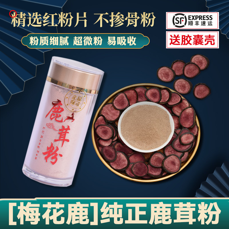 100克鹿茸粉正品可灌胶囊纯正吉林梅花鹿原枝鹿茸片干鹿茸代打粉