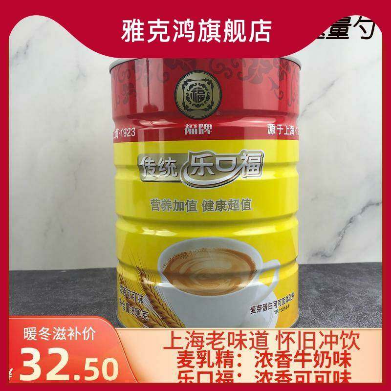 上海福牌传统乐口福800浓香可可麦乳精可可粉蛋白型固体饮料罐装