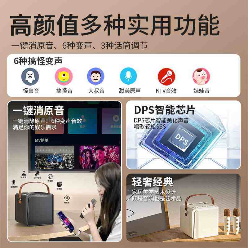 other/其他 无家庭KTV音响套装卡拉OK麦克风话筒一体唱歌机蓝牙无
