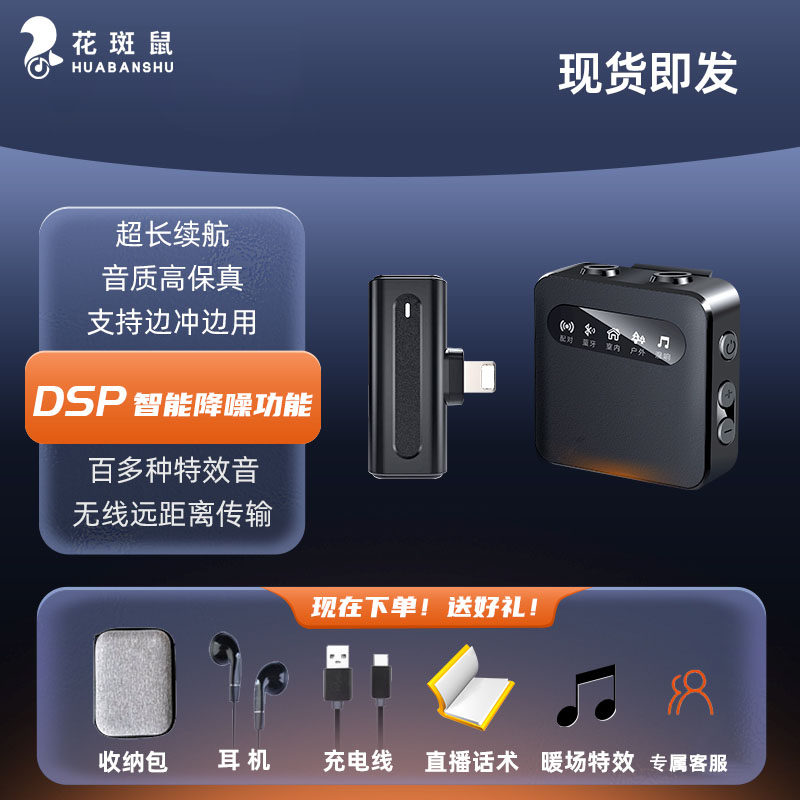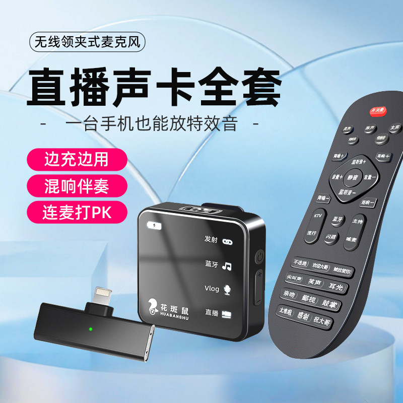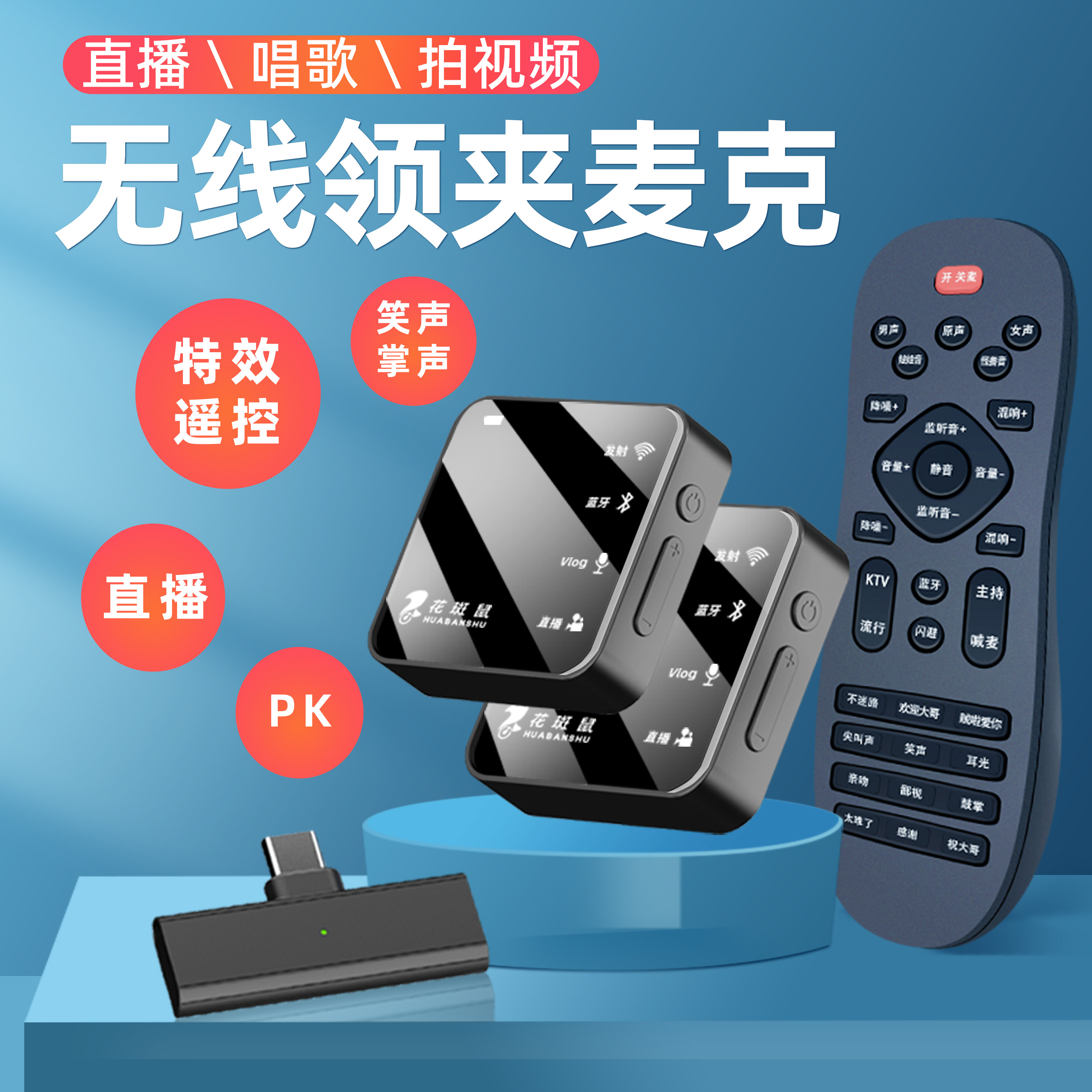 花斑鼠无线领夹麦克风直播唱歌声卡套装智能降噪连麦pk收音设备