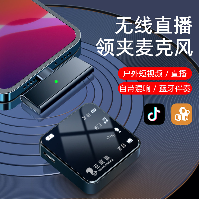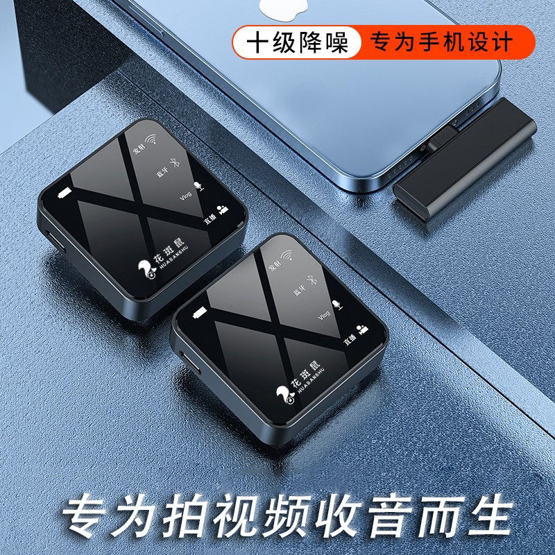 花斑鼠无线领夹式麦克风带显示屏直播设备自带声卡拍视频降噪收音