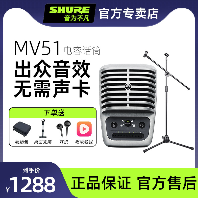 shure/舒尔mv51 电容麦克风专业电脑网课手机录音配音全民k歌话筒