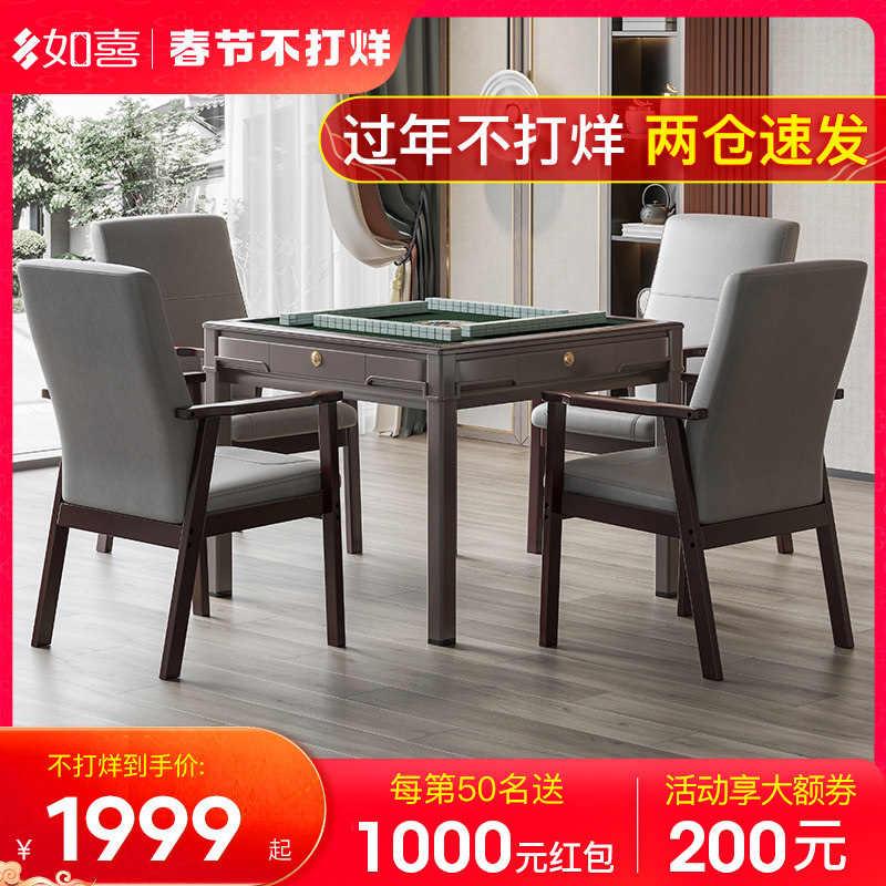 欧式实木全自动麻将机餐桌两用家用带椅子四口电动麻将桌椅带充电