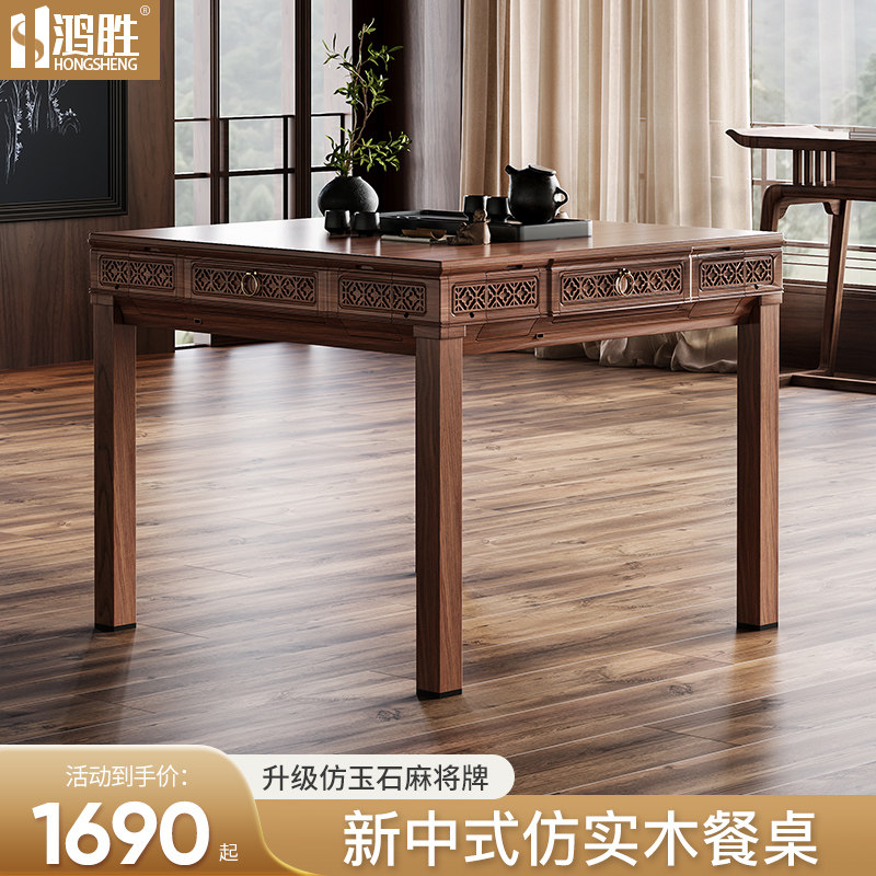 新中式仿实木麻将机全自动餐桌两用电动麻将桌家用机麻四口机