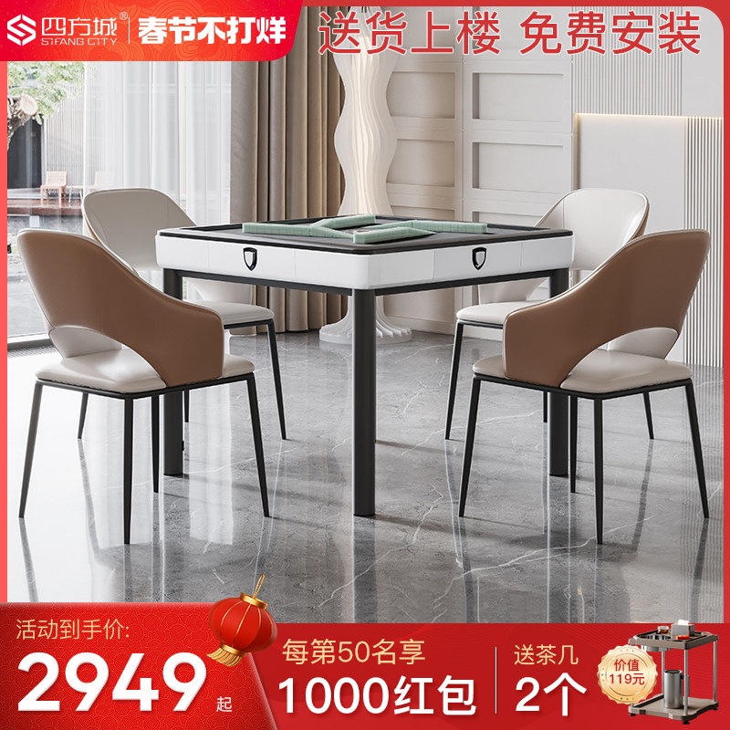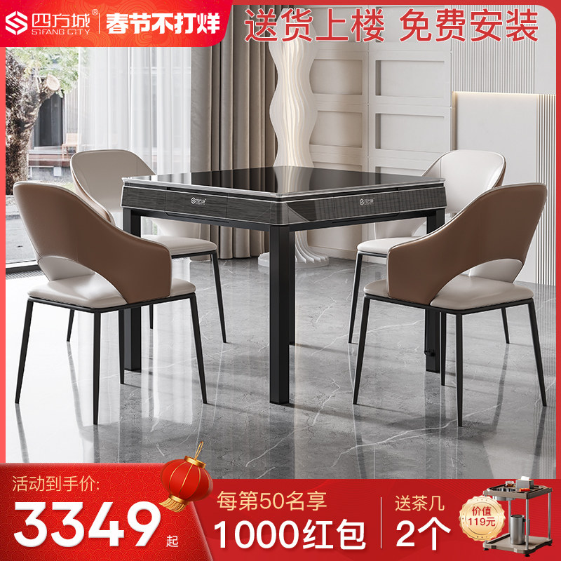 将圣麻将机全自动家用智能麻将桌餐桌两用现代简约电动低音四口机