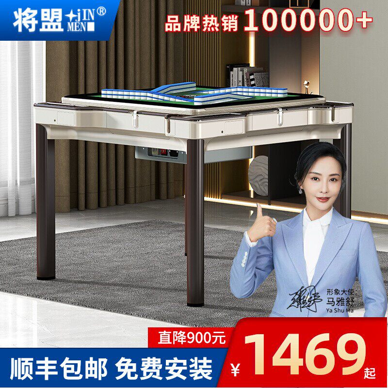 将盟麻将机全自动家用天猫精灵新款折叠取暖电动低音麻将桌五件套