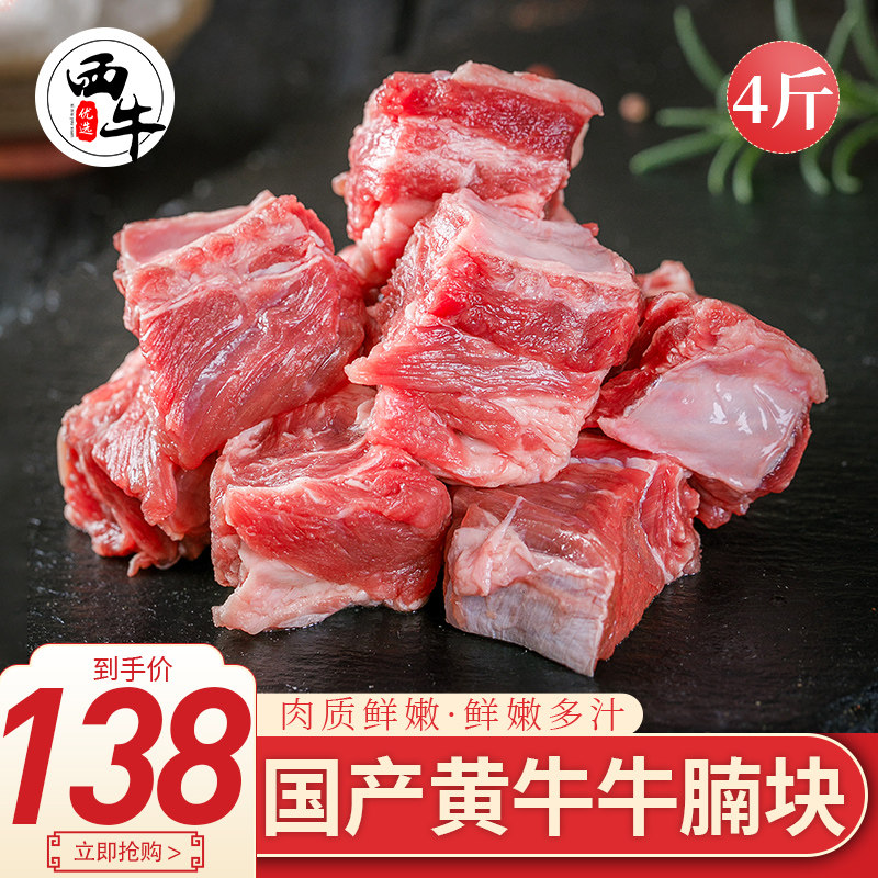 西牛优选 黄牛肉 牛腩块2000g牛腩肉牛肉块新鲜牛排冷冻红烧食材5