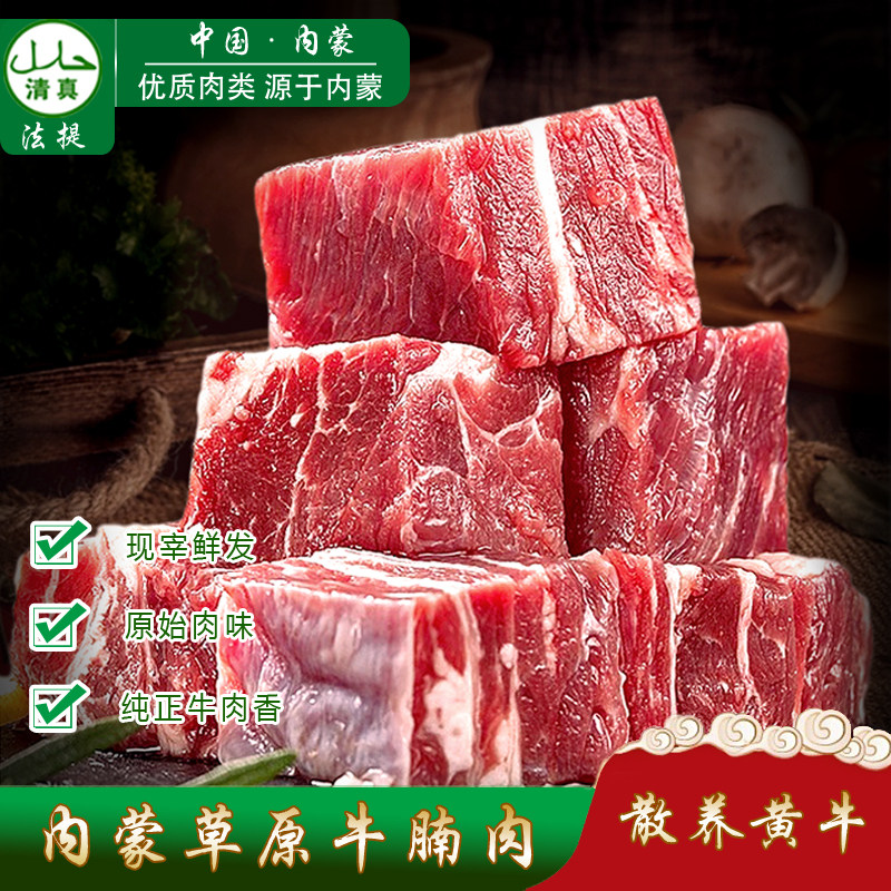 清真内蒙生鲜纯牛腩肉块家用商用生鲜冷冻原切黄膘牛新鲜生牛肉粒