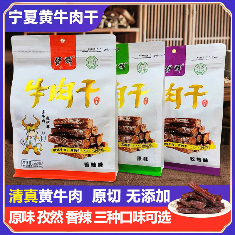 宁夏风干牛肉干正宗银川特产伊辉黄牛肉干无添加手撕风味牛肉清真