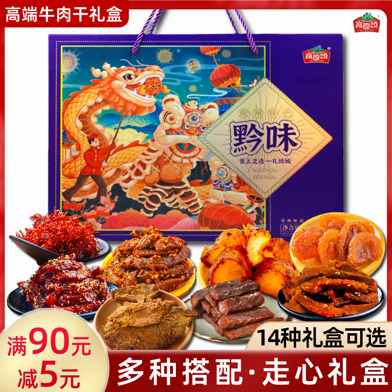 湖北九州 恩施思乐牛肉干1200g礼盒 经典红盒 山地黄牛黄盒麻辣味