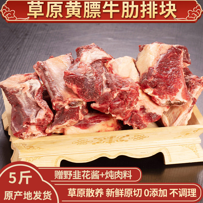 黄膘牛排内蒙牛肉草原散养黄膘牛排骨黄牛原切牛肋排5斤牛排原切