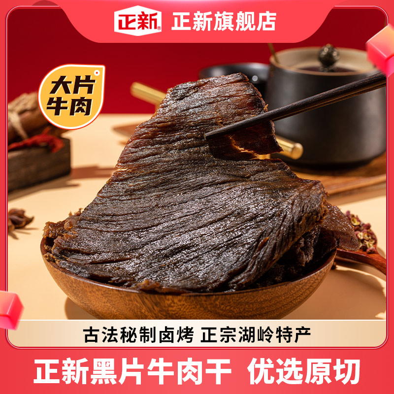 正新黑片牛肉干正宗温州瑞安大片黄牛肉古法卤制零食湖岭牛肉干