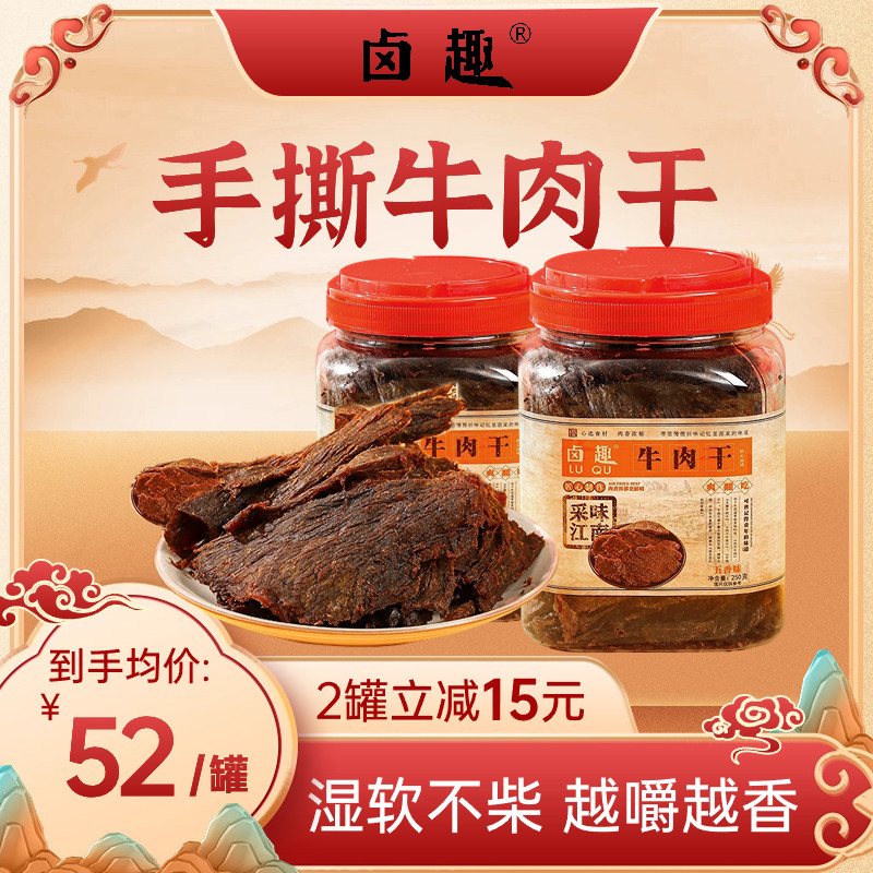 手撕牛肉干正宗湖岭黄牛肉温州特产零食小吃罐桶装五香湖岭牛肉干