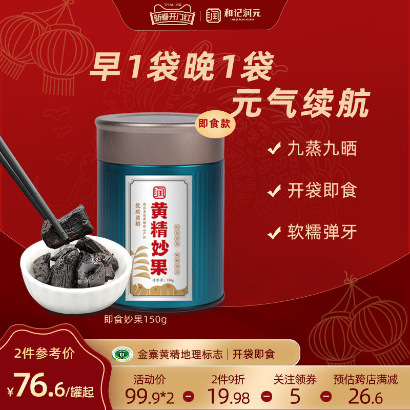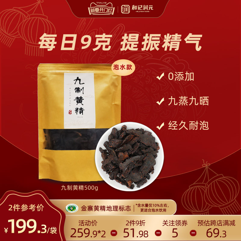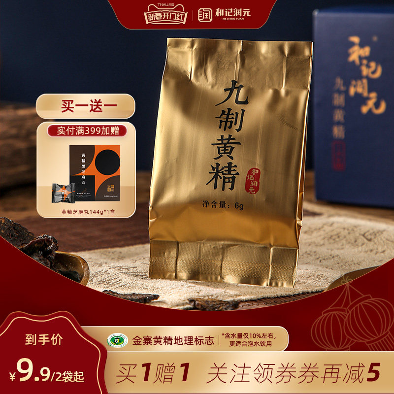 和记润元九蒸九晒九制黄精中药材食用野生泡茶煲汤独立包装120g