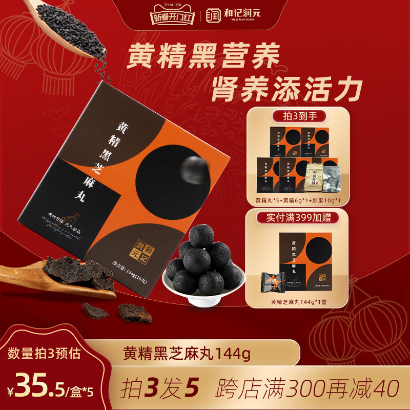 【拍3发5】和记润元黄精玫瑰芝麻丸纯手工九晒九蒸食用零食144g
