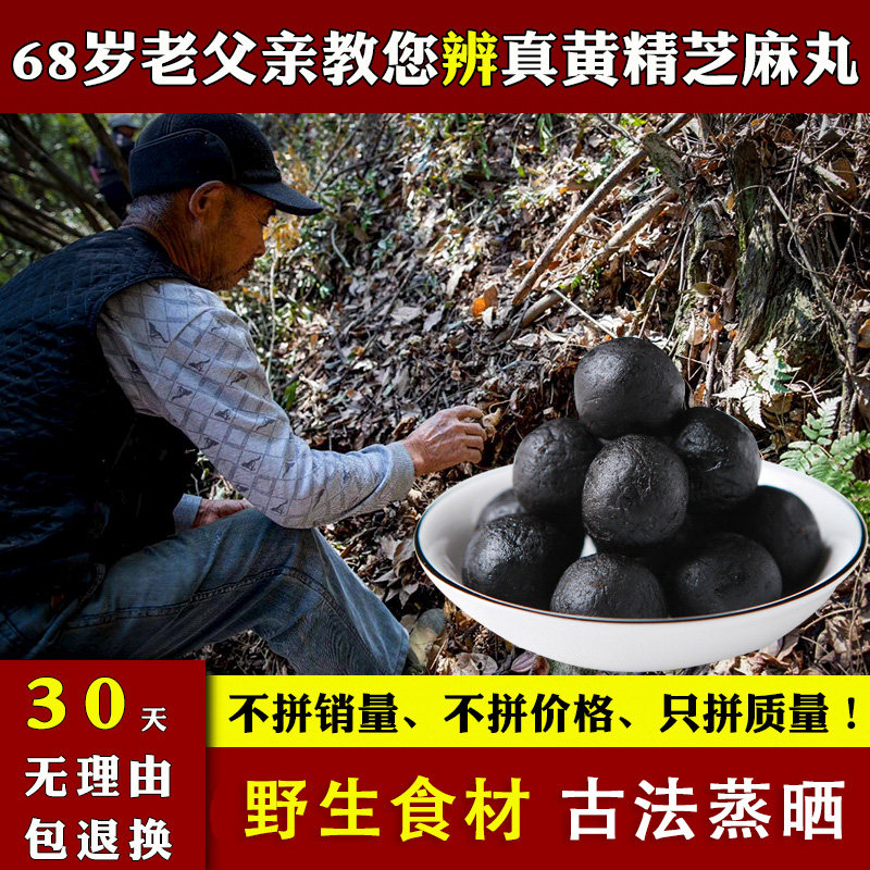 九华山野生黄精黑芝麻丸九蒸九晒手制即食无蔗糖添加男女滋补养生