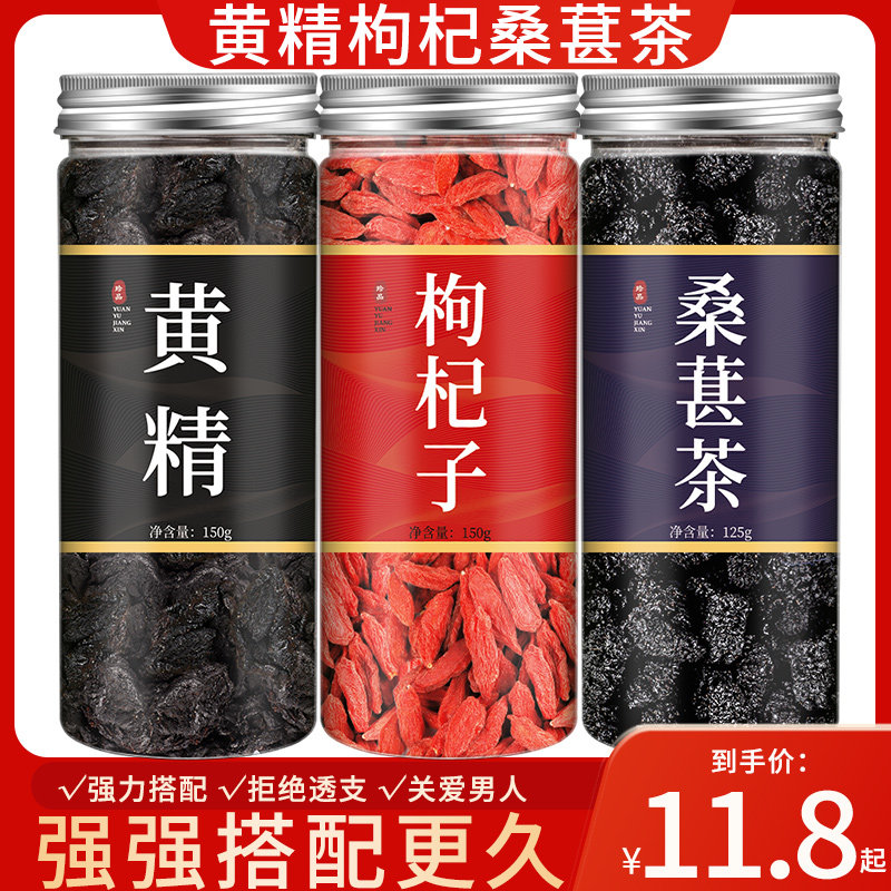 黄精桑葚枸杞茶中药材正品九蒸九晒九华山野生药材黄精茶枸杞子茶