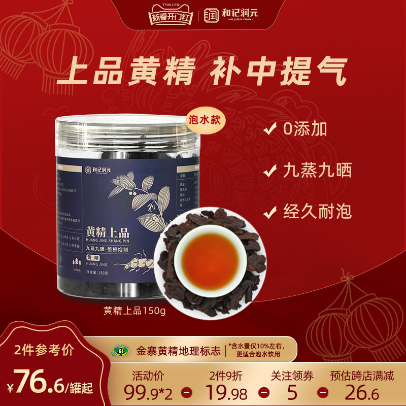 北京同仁堂黄精九蒸九晒中药材正品官方旗舰店非九华山九制枸杞茶