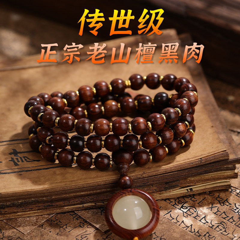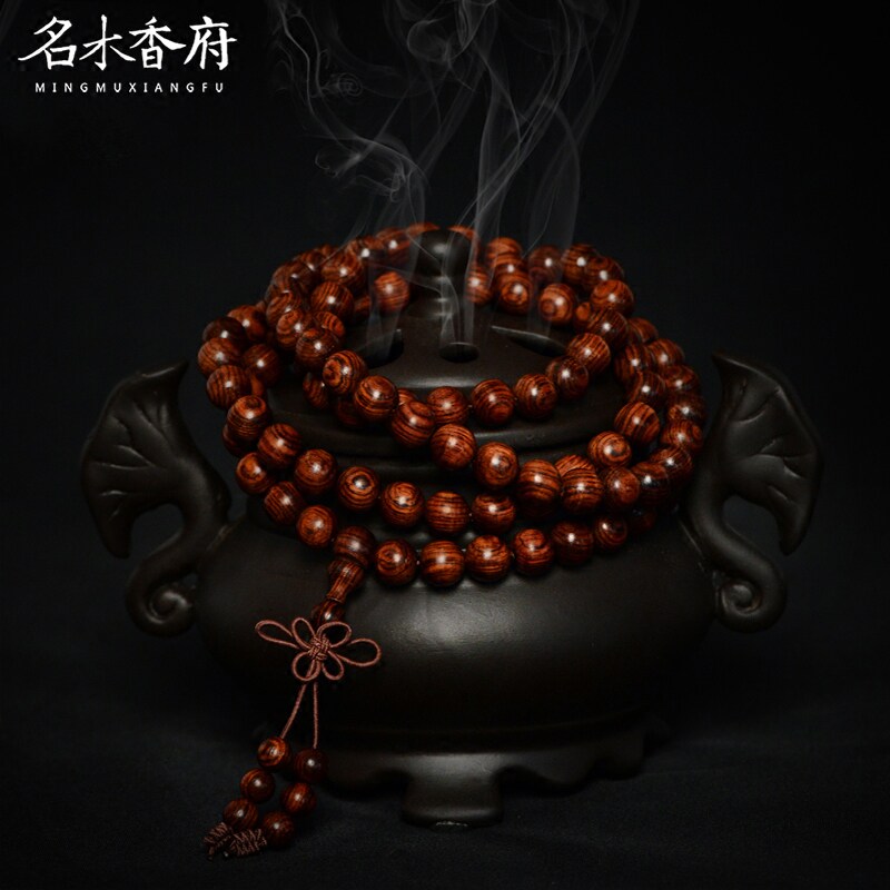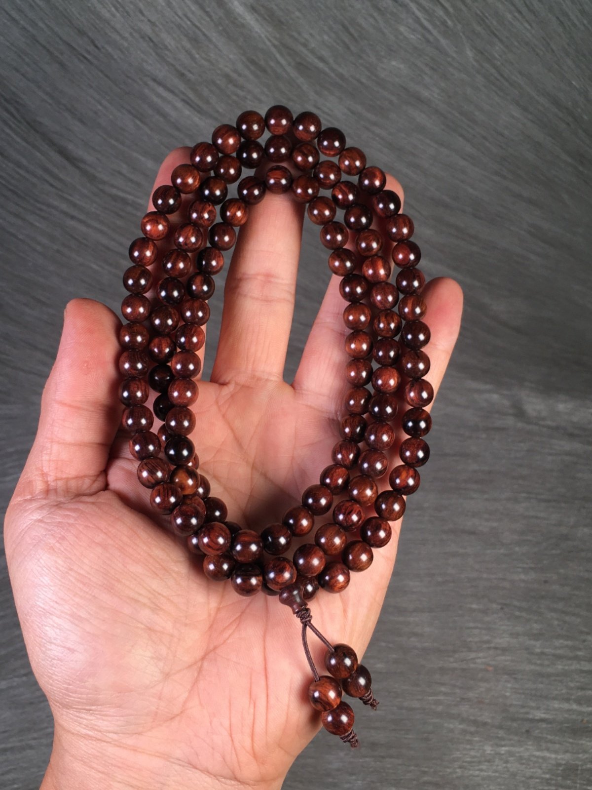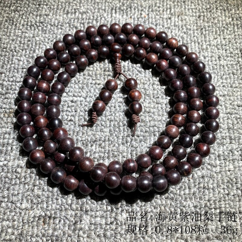 精品级海南黄花梨老料0.8*108颗佛珠念珠手链海黄紫油梨圆珠手串