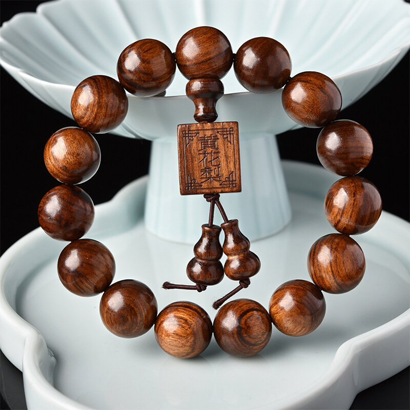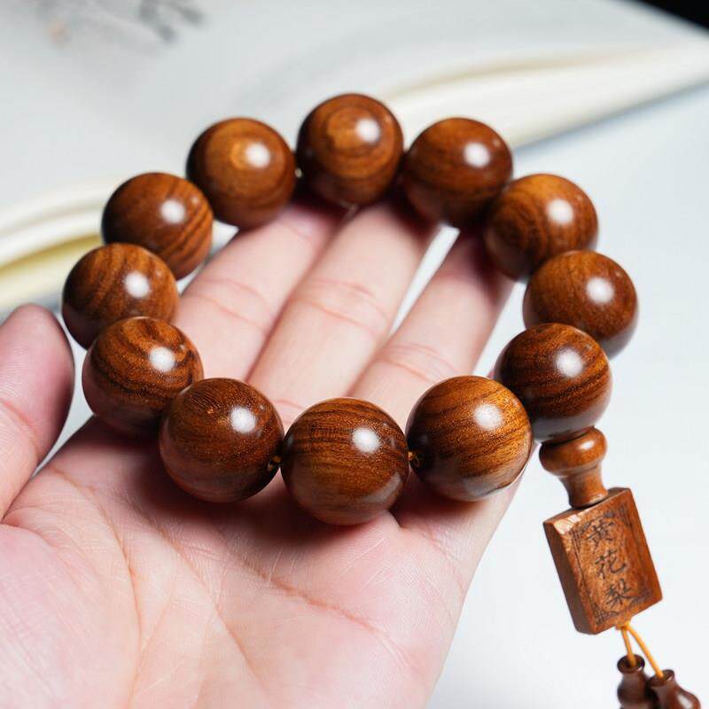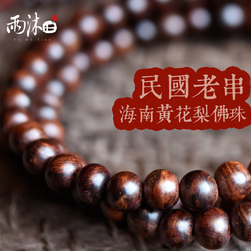 黄花梨手串木料108文玩佛珠念珠老料手链男海南桶珠饰品男士盘玩