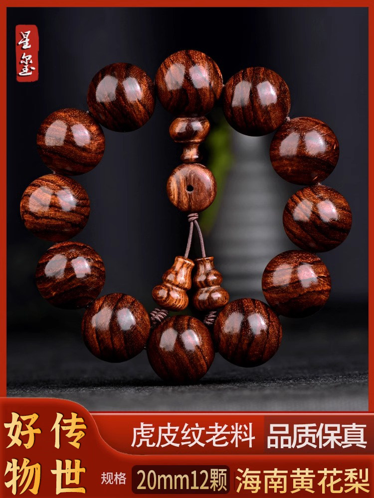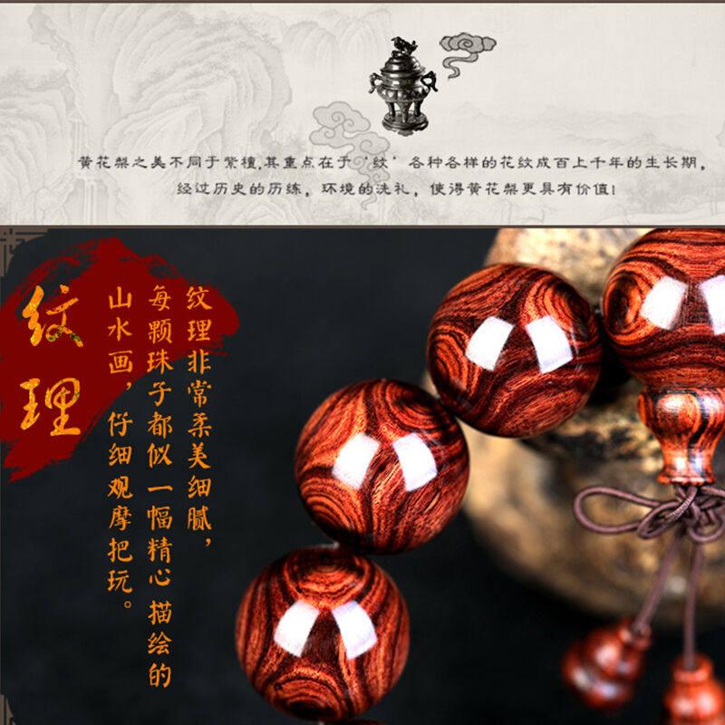 正宗海缅越黄花梨手串手链108颗佛珠念珠海南老料虎皮纹男女士