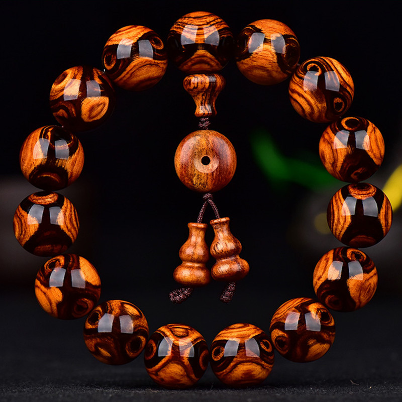 海南黄花梨手串虎皮纹对眼鬼脸海黄老料糠梨佛珠1.5男女手链文玩