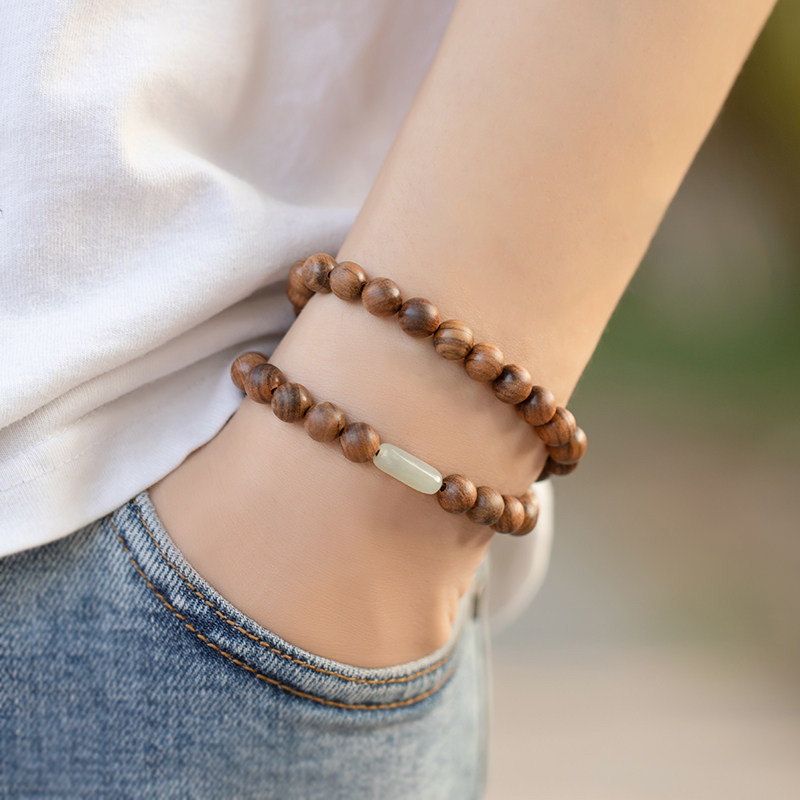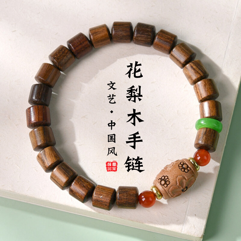奥莱清仓越南黄花梨木珠手串和田玉古风简约檀香木质男女多圈手链