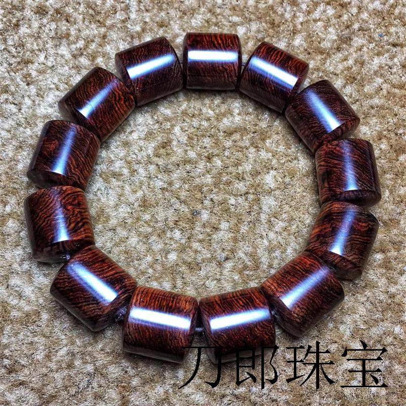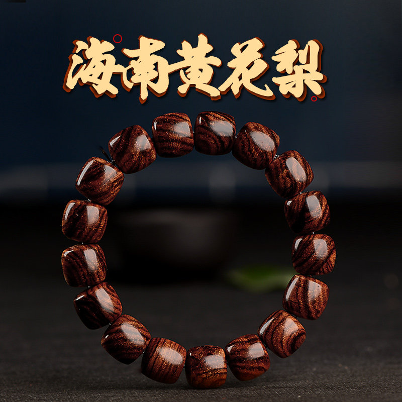 海南野生黄花梨手串男女款桶珠手串虎皮纹海黄油梨老料手工款珠串