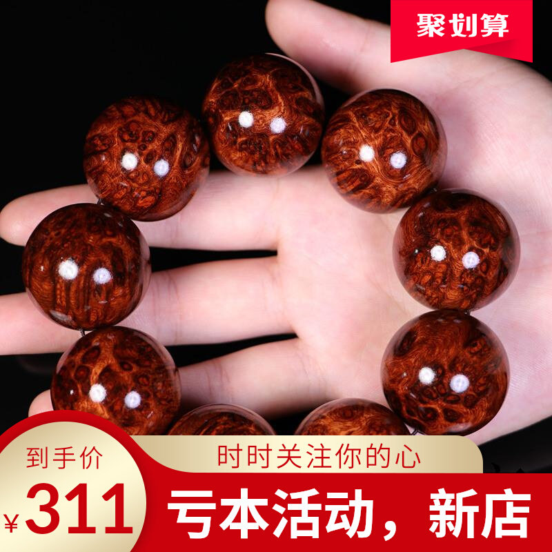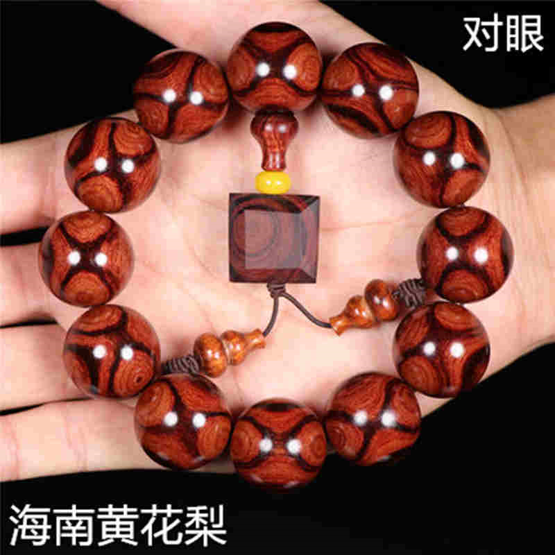 2.0男士海南黄花梨手串老料瘤疤天然高密手链佛珠念珠对眼鬼脸级2