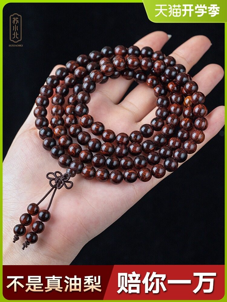 苏小北海南黄花梨手串海黄紫油梨念珠鬼脸对眼老料佛珠手链108颗