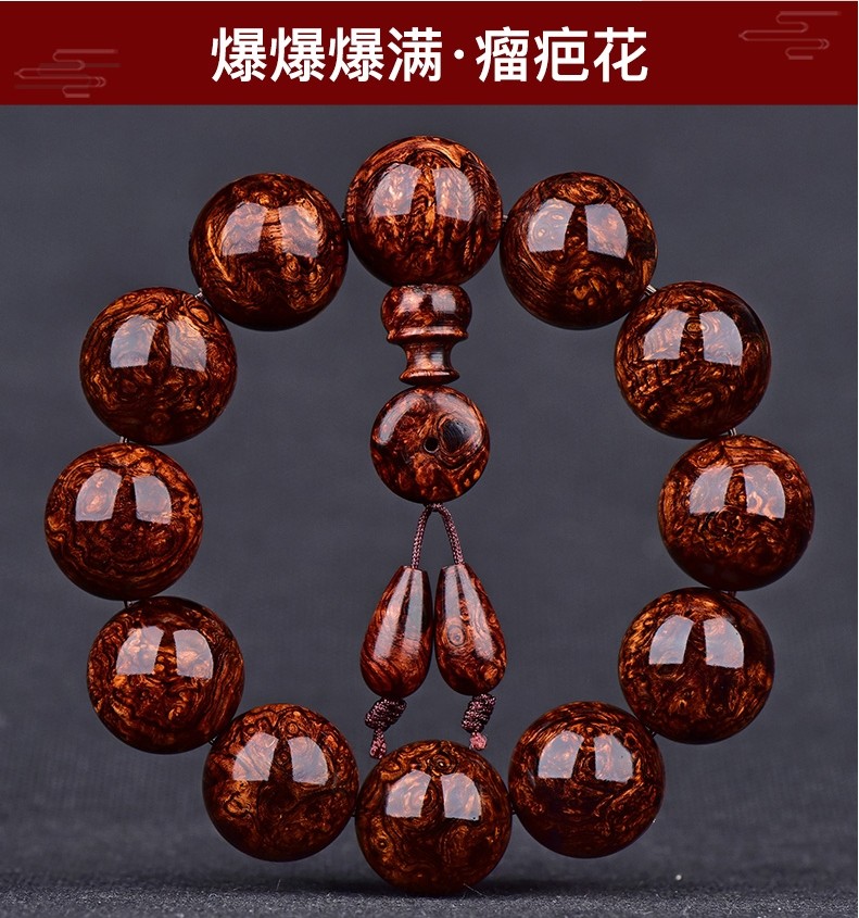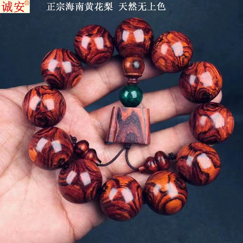 正宗海南黄花梨油梨爆满瘤疤花梨木佛珠文玩盘玩沉水级手串男士