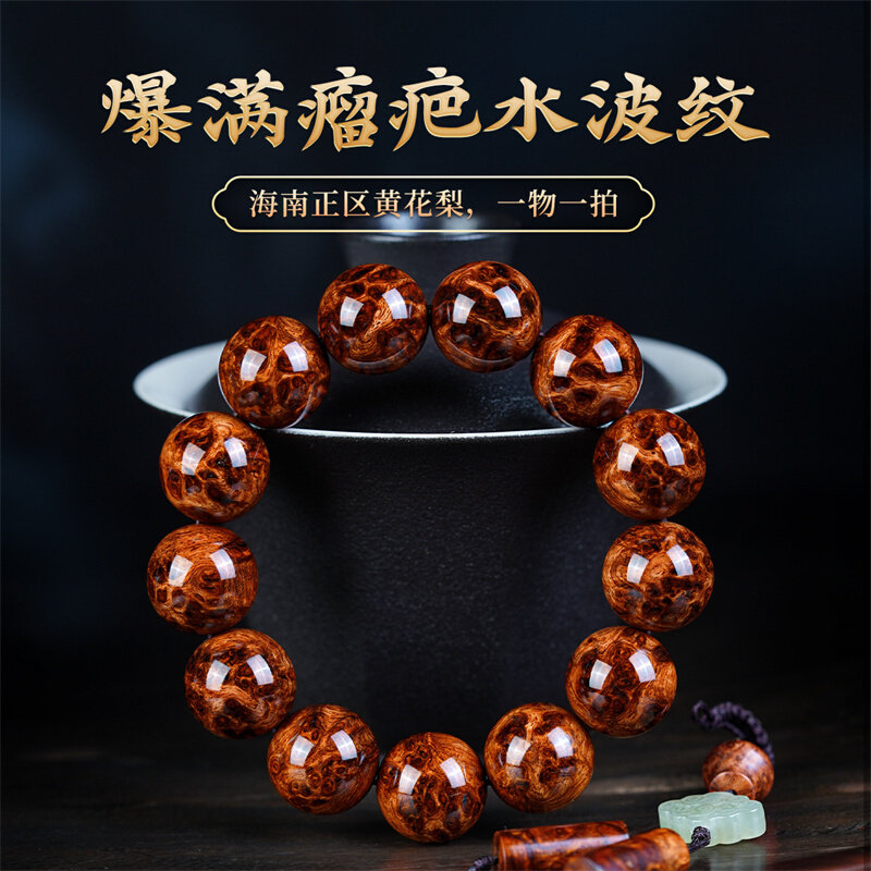 海南黄花梨手串瘿瘤满水波纹海黄瘤疤纹手链男女款老料颗颗对