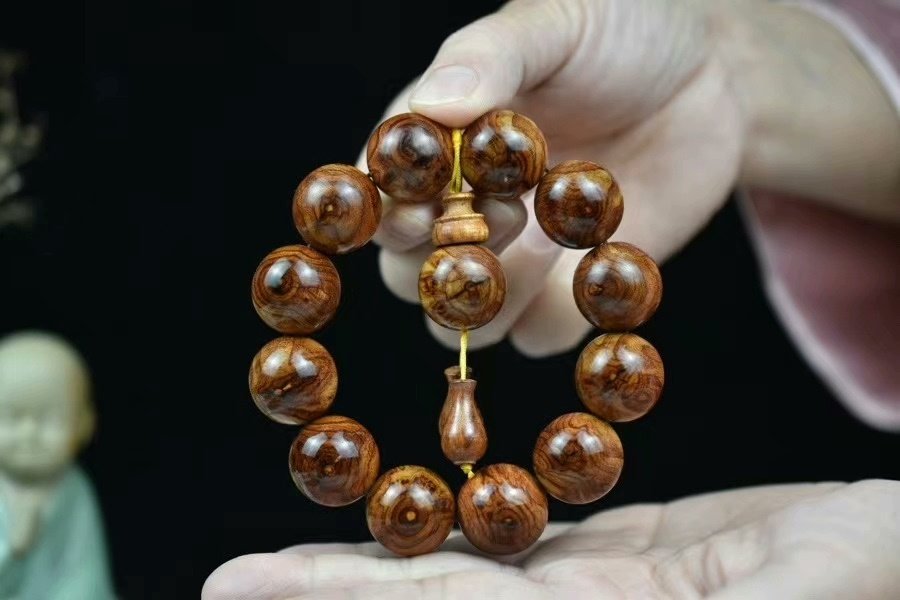檀尊海南黄花梨手串20mm17+1颗【手持虎皮纹】老料佛珠文玩孤品T2