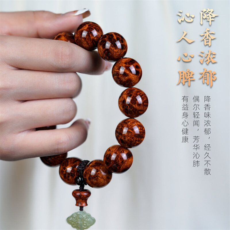 妍韵珠宝黄花梨手串降香黄檀虎斑山水木把件文玩佛珠念珠男女士手