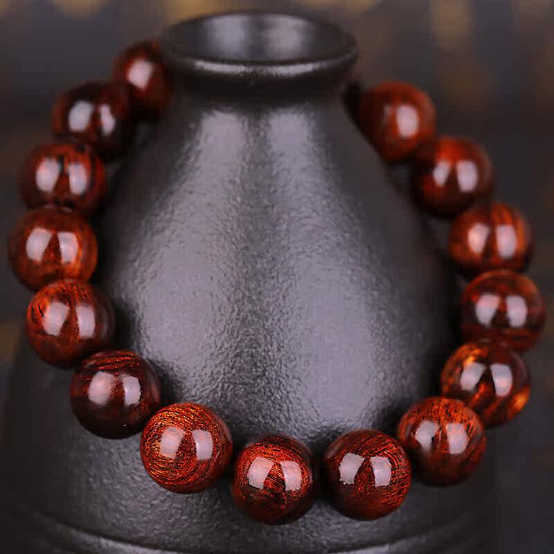 黄花梨手串海黄15手链越黄佛珠男女文玩饰品紫油梨虎皮纹一物一拍