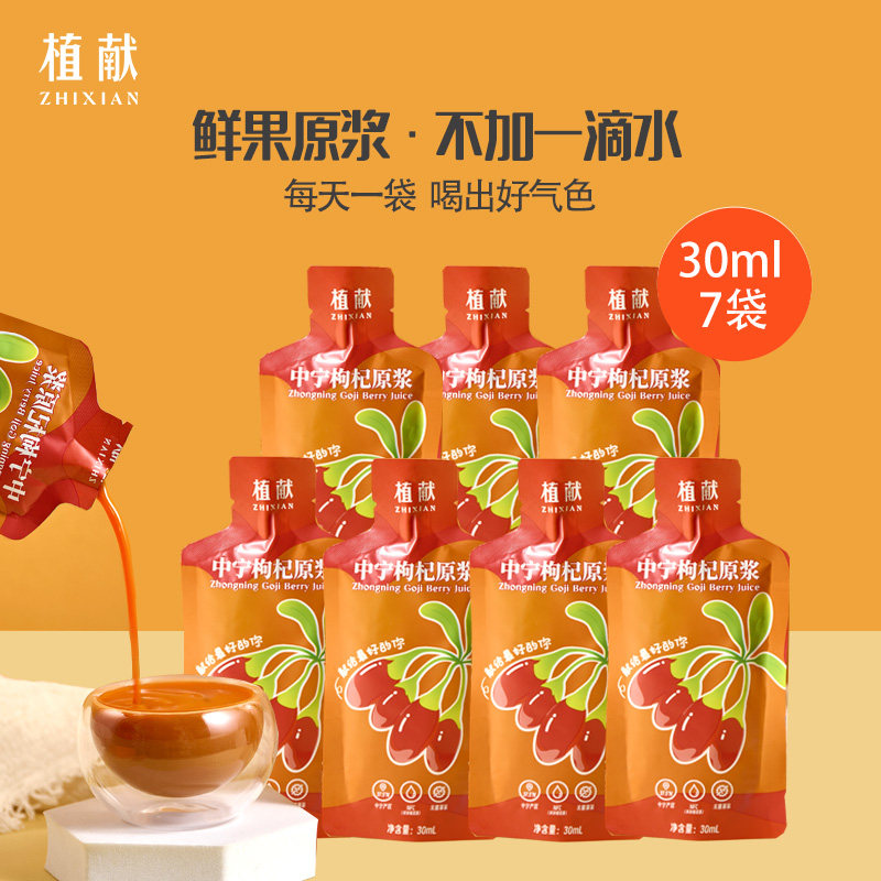 植献鲜枸杞原浆沙棘原浆枸杞汁红黑枸杞原液鲜果榨汁饮品30ml*7袋