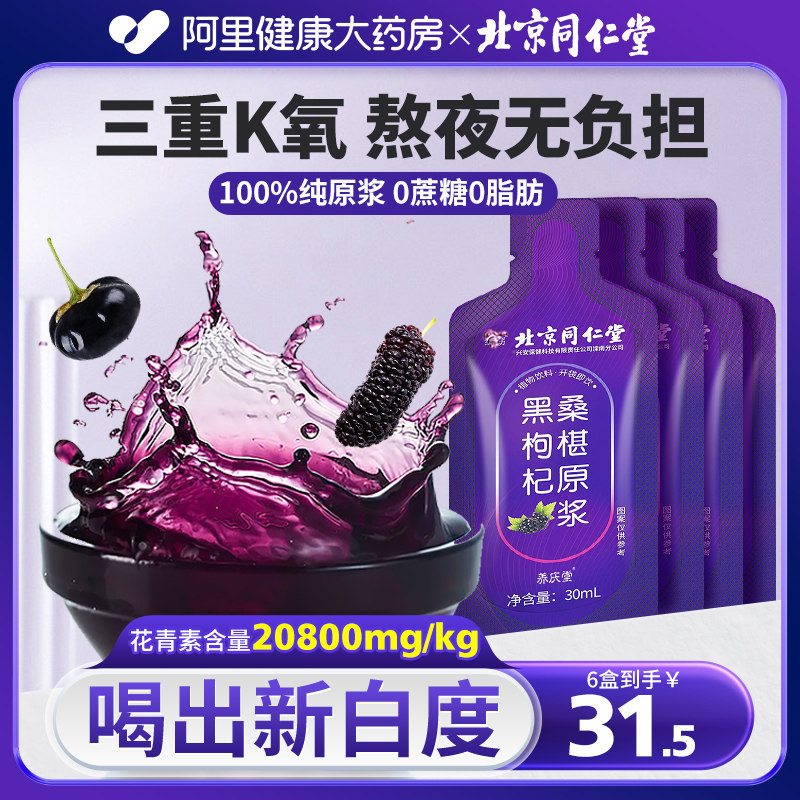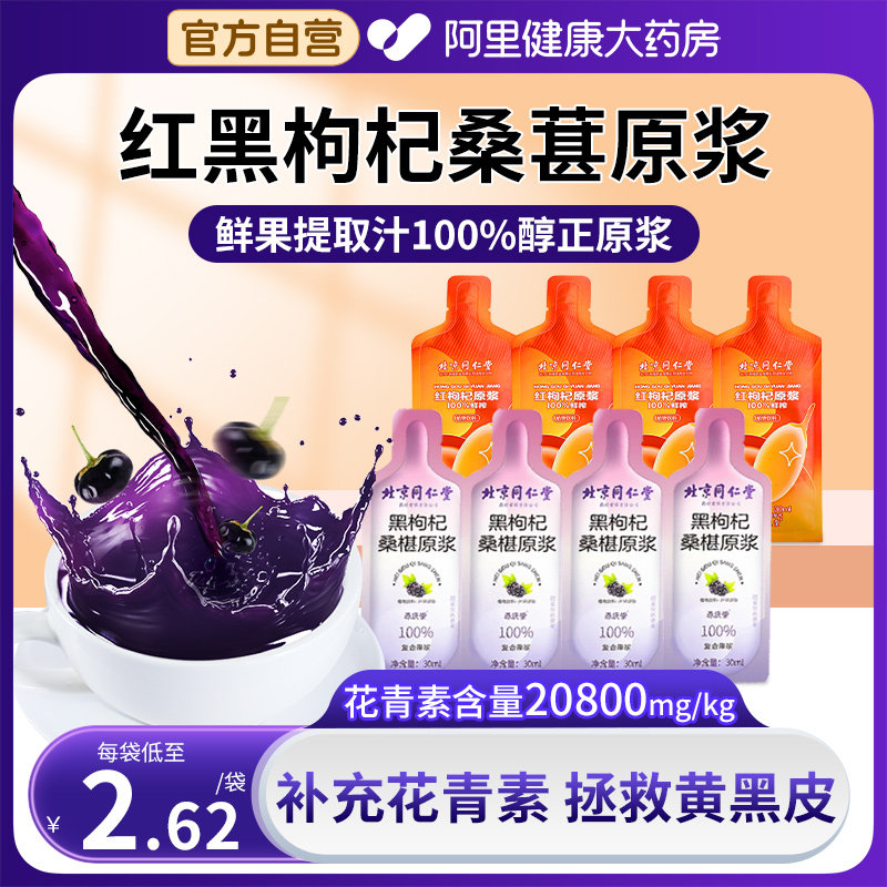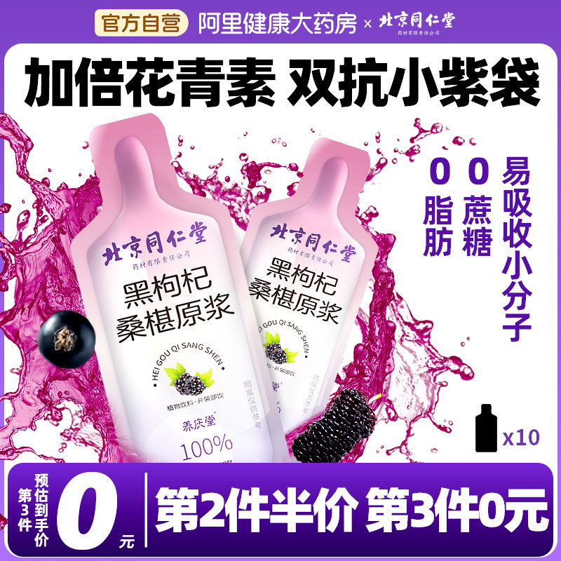 北京同仁堂桑葚黑枸杞原浆旗舰店官方宁夏鲜枸杞花青素原浆汁nfc