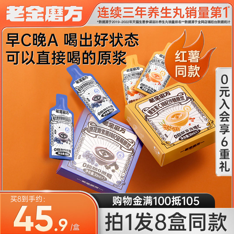 老金磨方蓝莓黑枸杞原浆旗舰店官方宁夏鲜红枸杞汁沙棘原液花青素