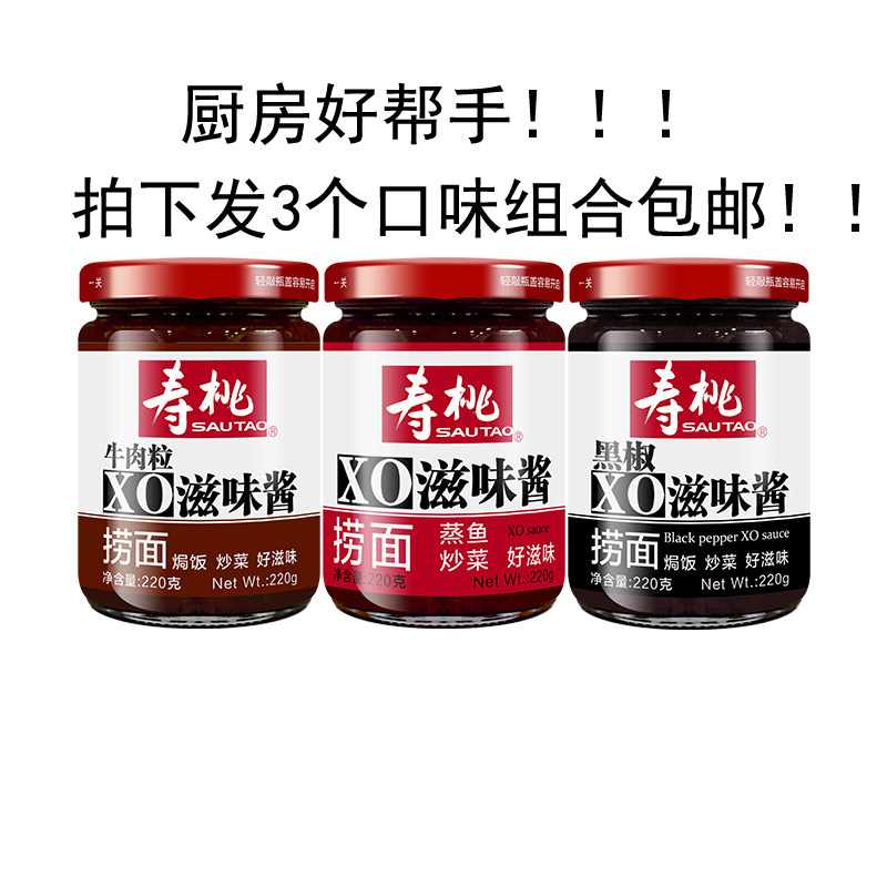 寿桃牌711车仔面专用拌面酱捞面酱xo酱黑椒酱牛肉粒酱3瓶组合装