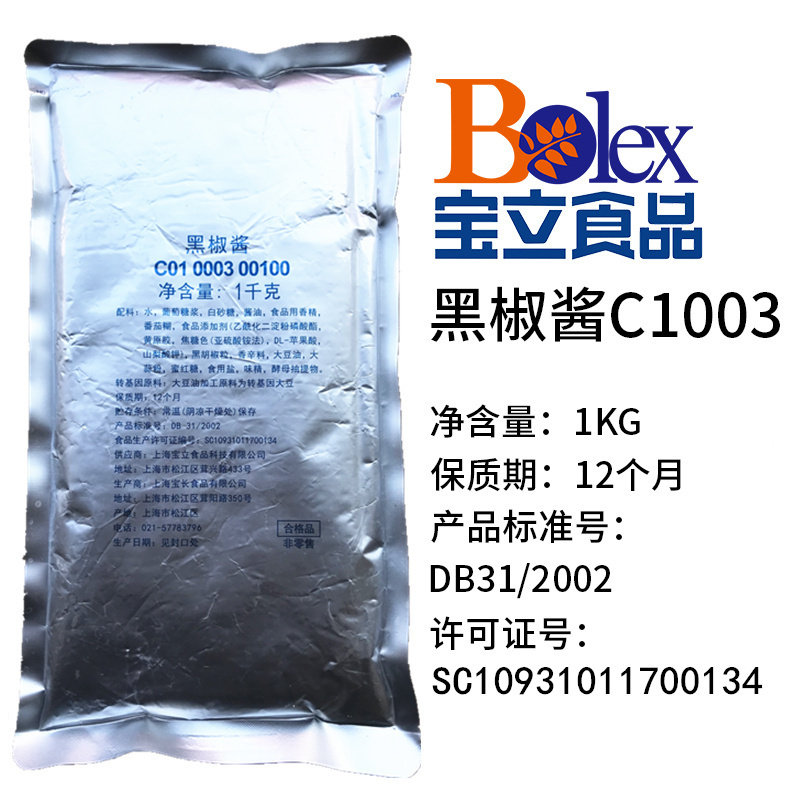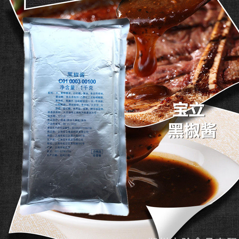 整箱宝立黑胡椒酱1kg*12袋西餐黑椒酱汁烤肉牛排酱意大利面酱包邮